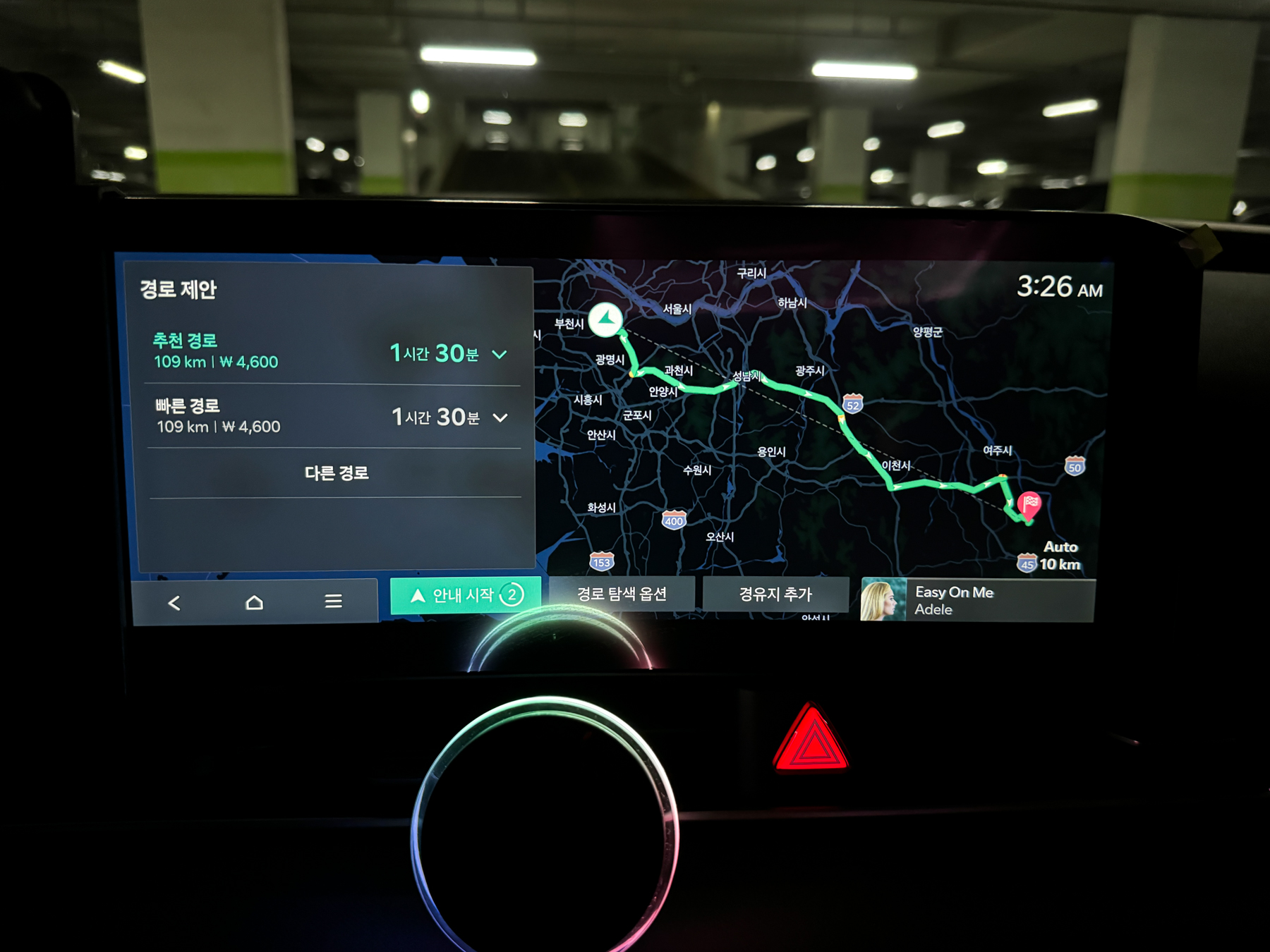 | 항상 내비를 찍어보면 T맵은 소요 시간이 차량 내비보다 조금 더 걸리는 것으로 나온다. 경로가 조금 달라 거리도 다르게 나왔지만 경로를 똑같이 설정해도 그렇다. T맵은 서해안-영동고속도로를 타는 걸로 떴고 차량은 수도권제1순환-제2영동 타라고 떴음. 결론은 소피아그린까지 새벽 시간에 정속으로 이동하면 1시간 30분 잡으면 된다. 조금 빨리 가면 1시간 20분 안쪽으로 갈 수도 있고... |