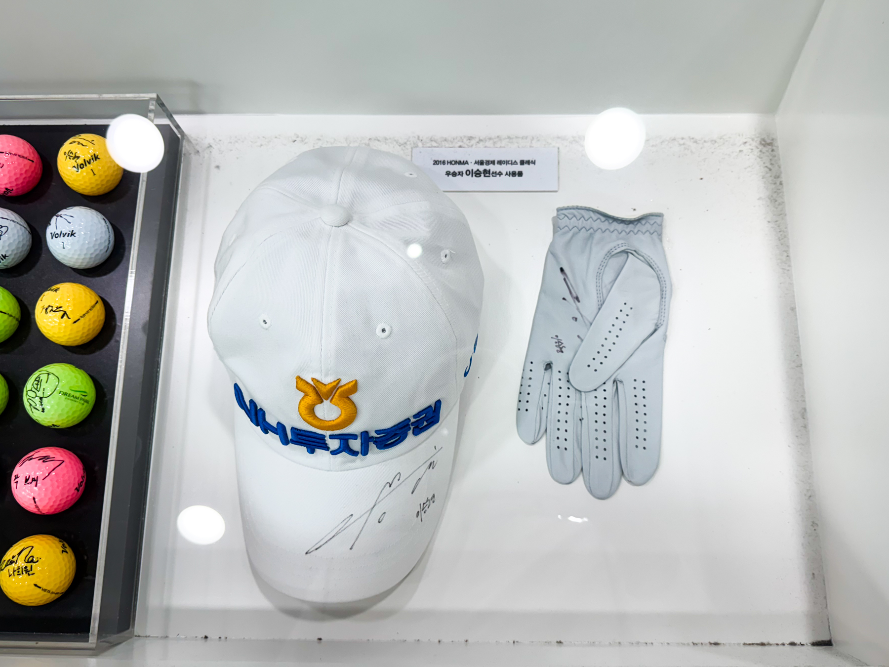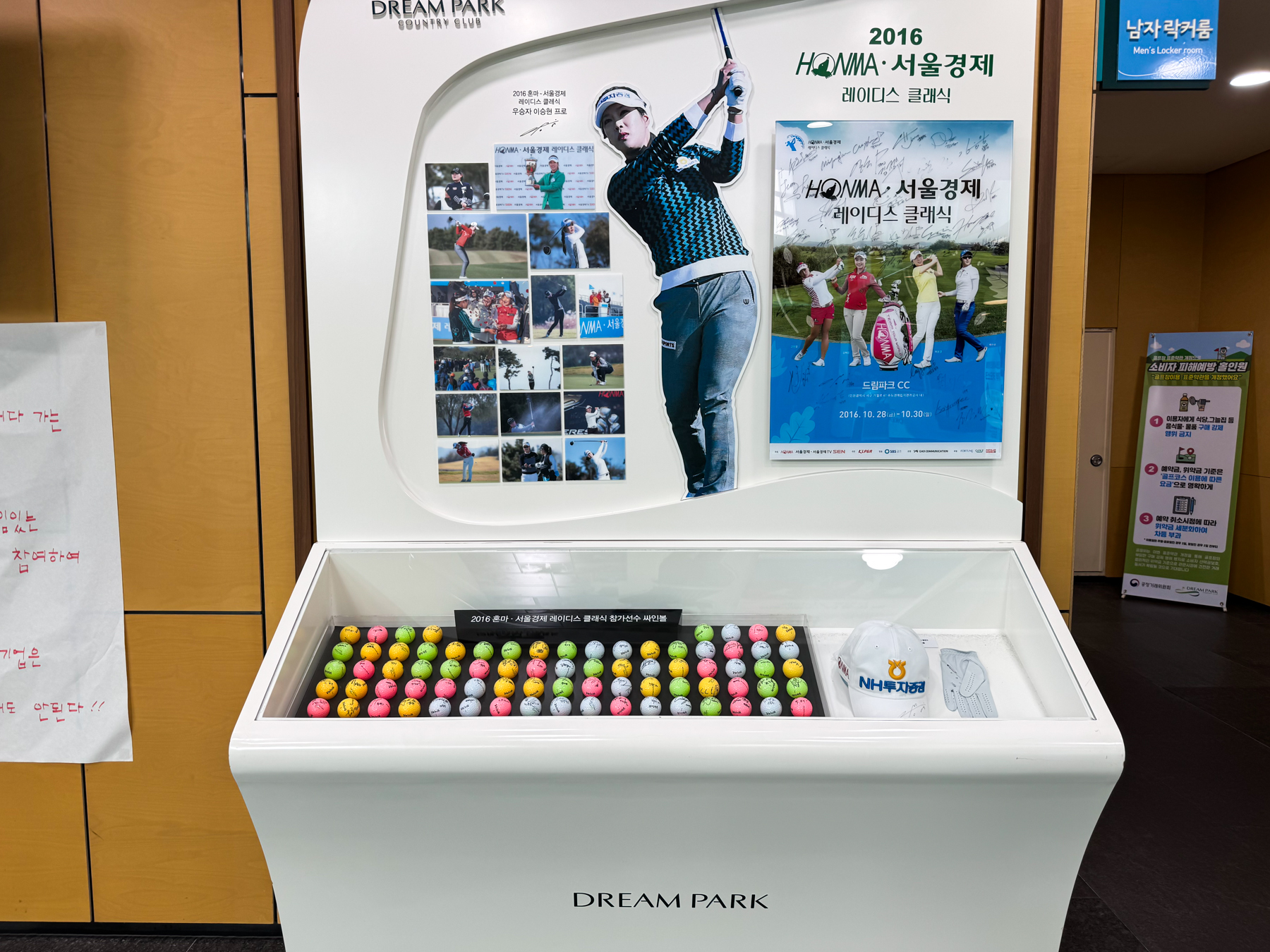 | 라커룸 입구 우측에는 2016년 개최한 대회 관련 선수 아이템들이 전시되어 있다. 선수 이름들을 보니 모두 들어봤던 선수들이지만 매우 오래 전이라는 걸 알 수 있는 이름들이었다. | |