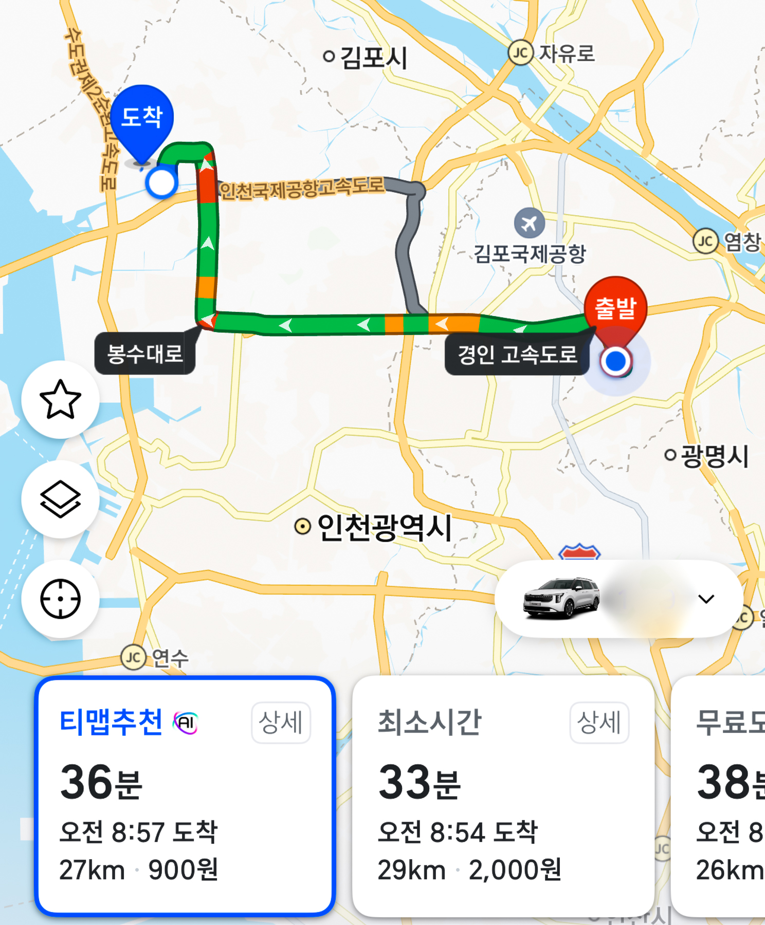 | 들어올 때는 못느끼고 나갈 때 느낀 거. 큰 도로까지 왤케 먼건지? ^^ 집까지는 경인고속도로 타고 오다가 서울 초입 부분이 막힌다고 떠서 부천으로 빠져 작은 길을 이용해서 귀가했다. 주차장 도착하니 5시 29분. 한 시간 걸렸다. | |