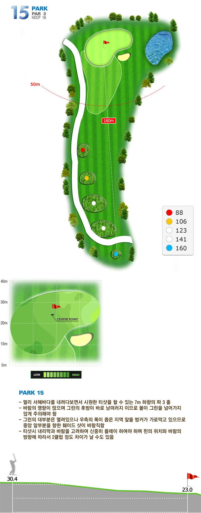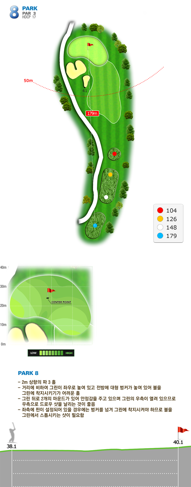 | 파크 OUT 코스 08번 파3홀. 6번 아이언으로 핀 우측 12m 지점에 안착. 투펏으로 파~! | |