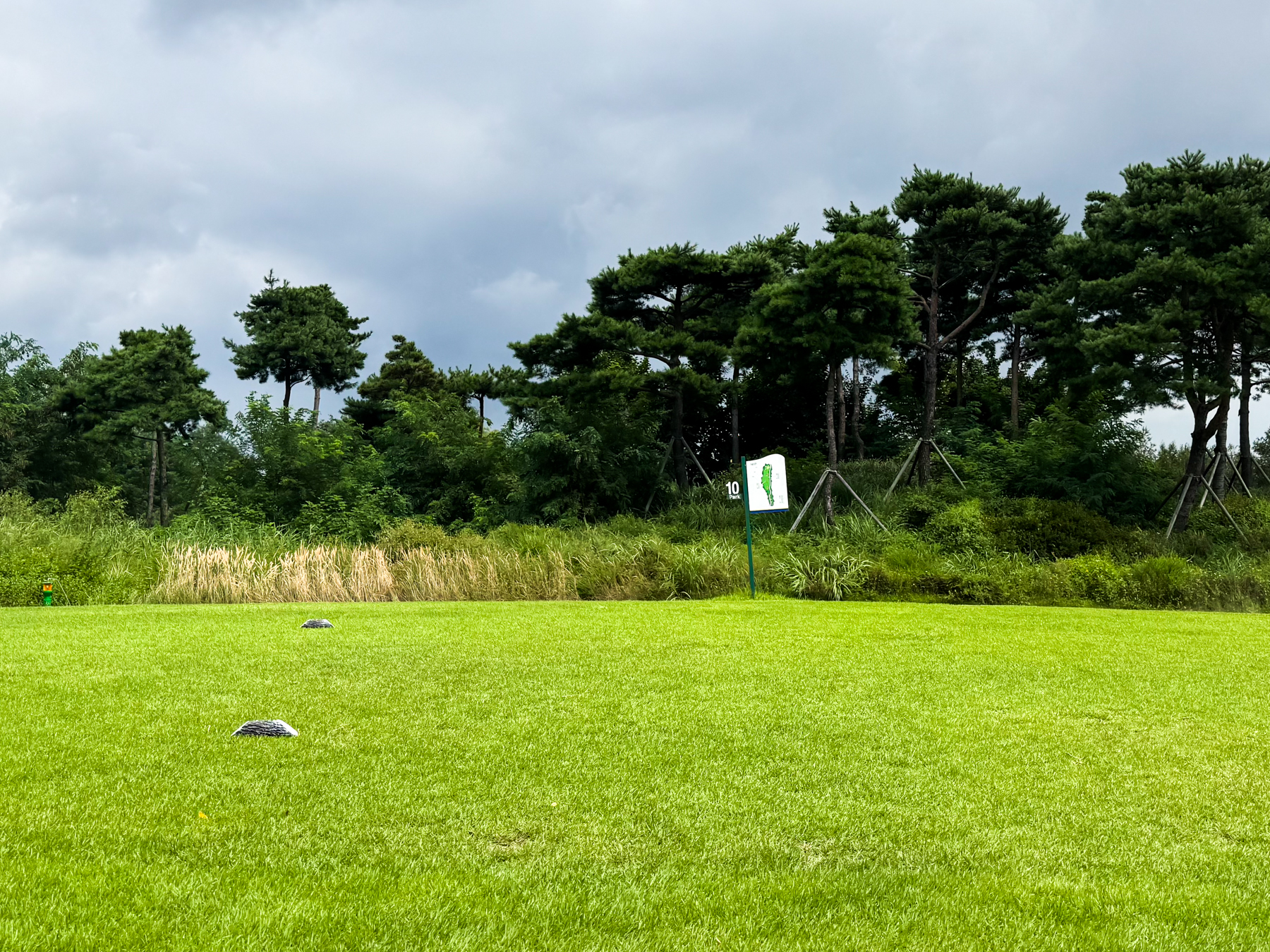 > 시작은 정신 없었다. 티오프 시간이 다가오는데 카트가 안나와서 조금 당황했었고 뒤늦게 나온 카트에서 호스트분과 다른 동반분을 만나 인사를 드렸는데 한 분이 안보이신다. 가만보니 백도 세 개네. 아직 안오셨나보다 했는데 호스트분은 연락처를 안가지고 계셨고 그나마 연락하던 채팅으로 글을 남겨봤지만 대답이 없다신다. 뭔가 느낌 쎄했다. 그래서 카트가 늦게 나온거고 더 지체할 수 없어 10번홀로 급하게 이동했다.