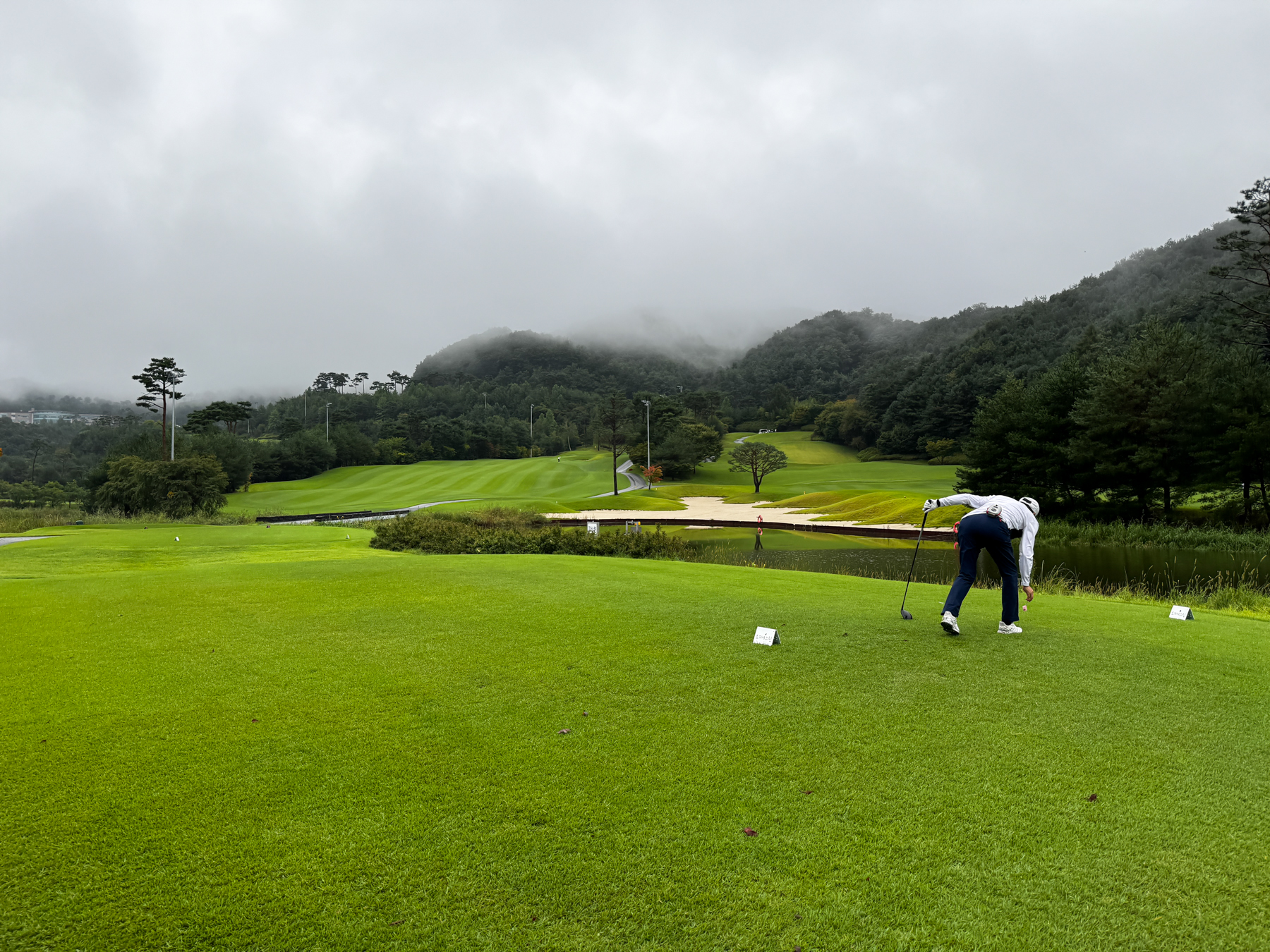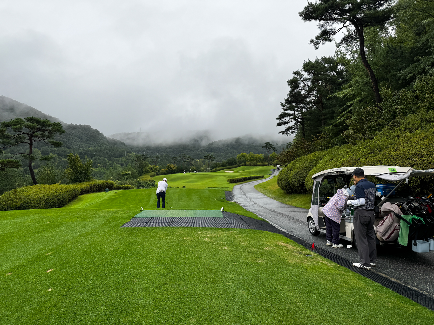 사실 오늘 라운드는 비가 예보되어 있었다. 차츰 토요일 7시 경에는 비가 그친다고 예보는 떴었지만 그걸 믿을 수가 없어서 비에 대한 준비로 우산을 백에 넣어 뒀고 복장도 비에 강한 놈으로다가 착장했다.